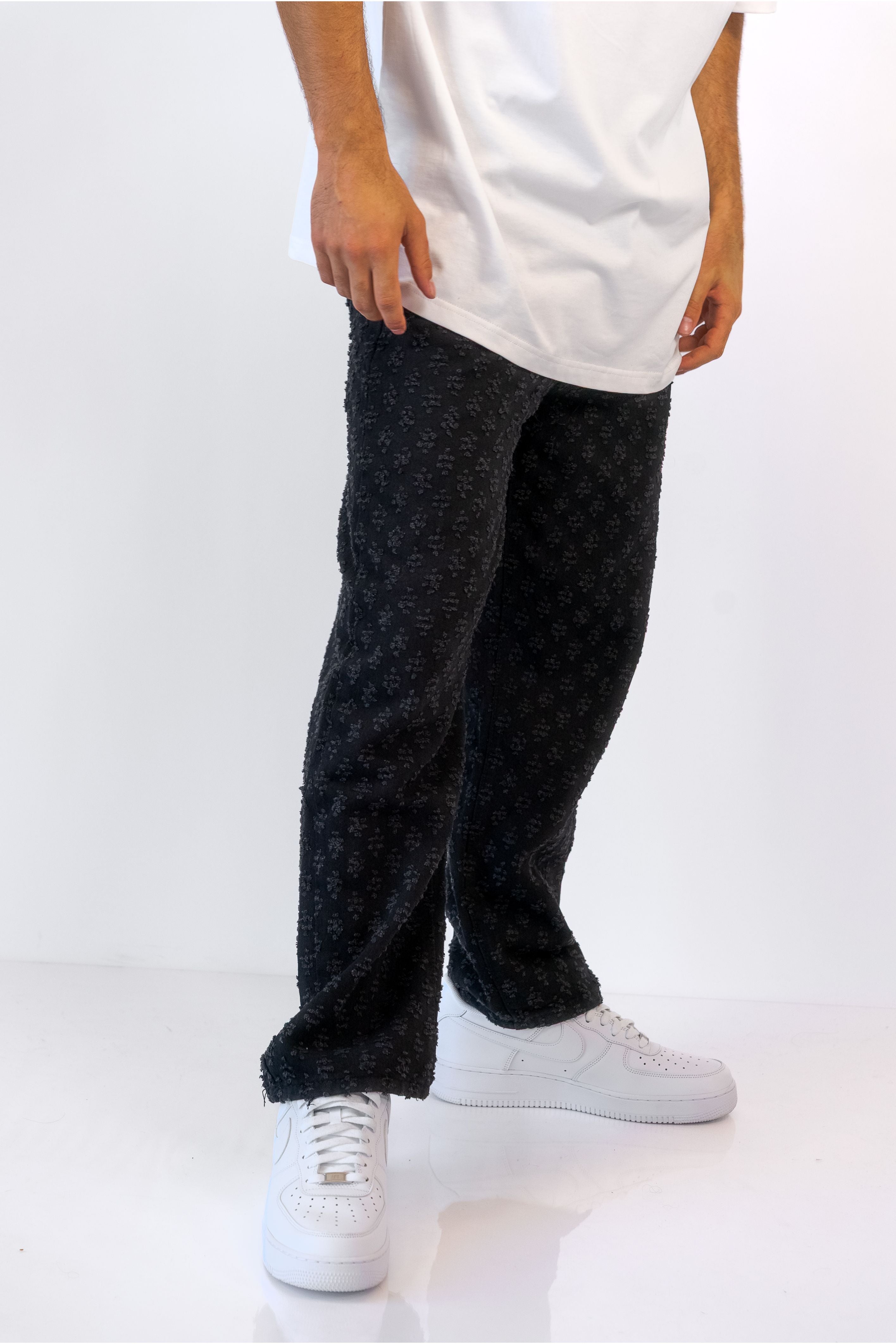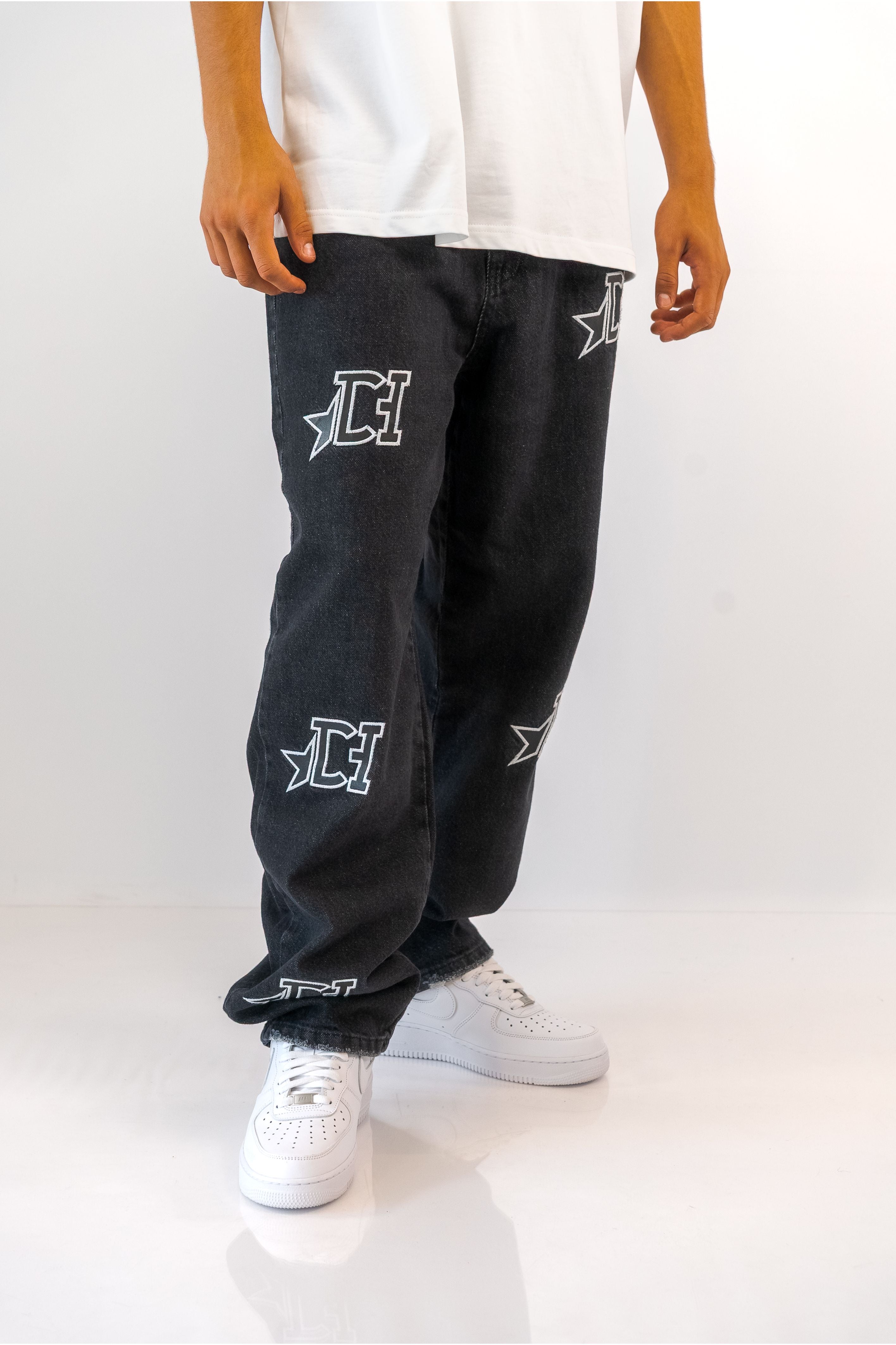 ג'ינס בגזרת Baggy בשילוב פאצ'ים שחור