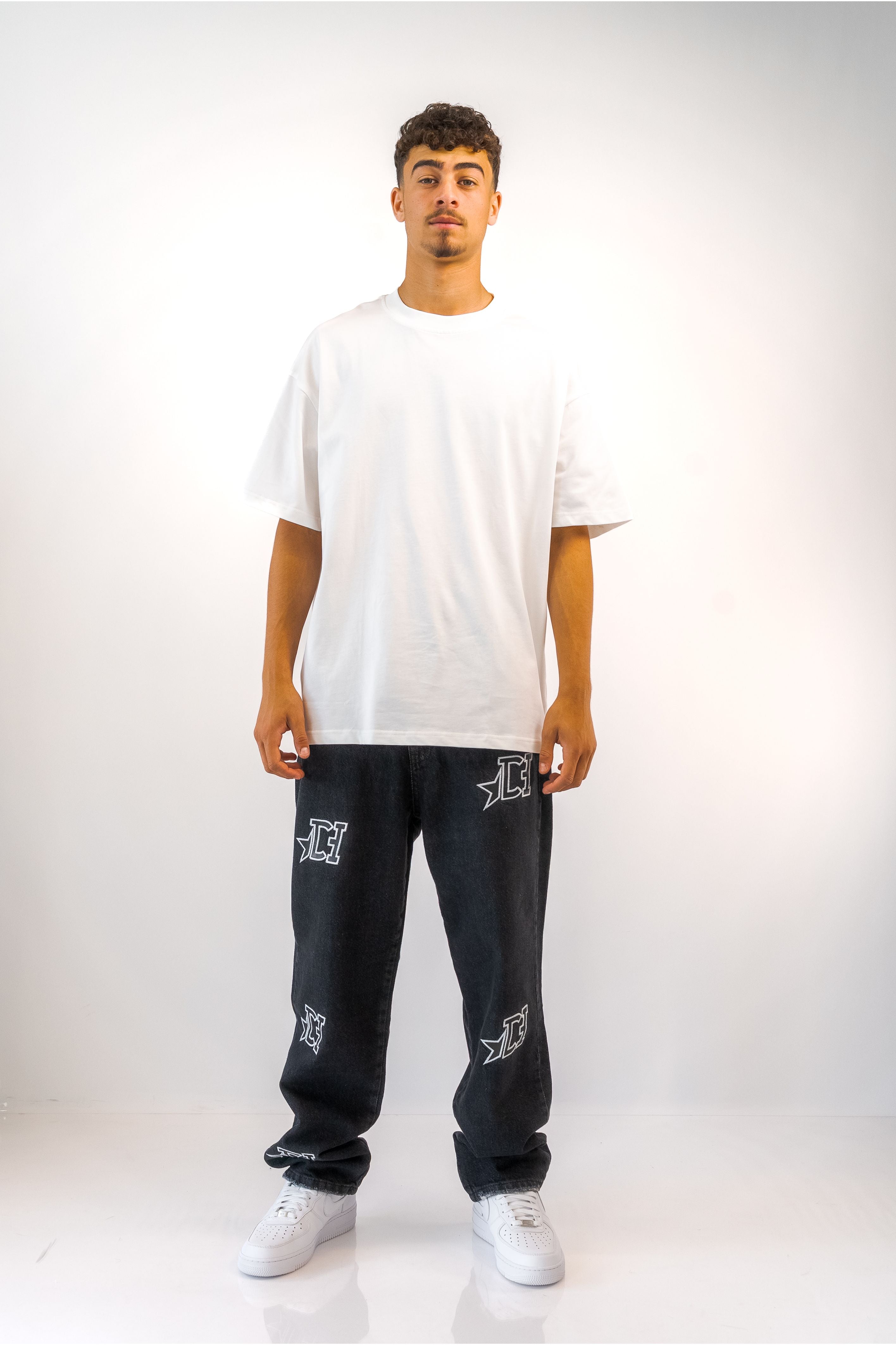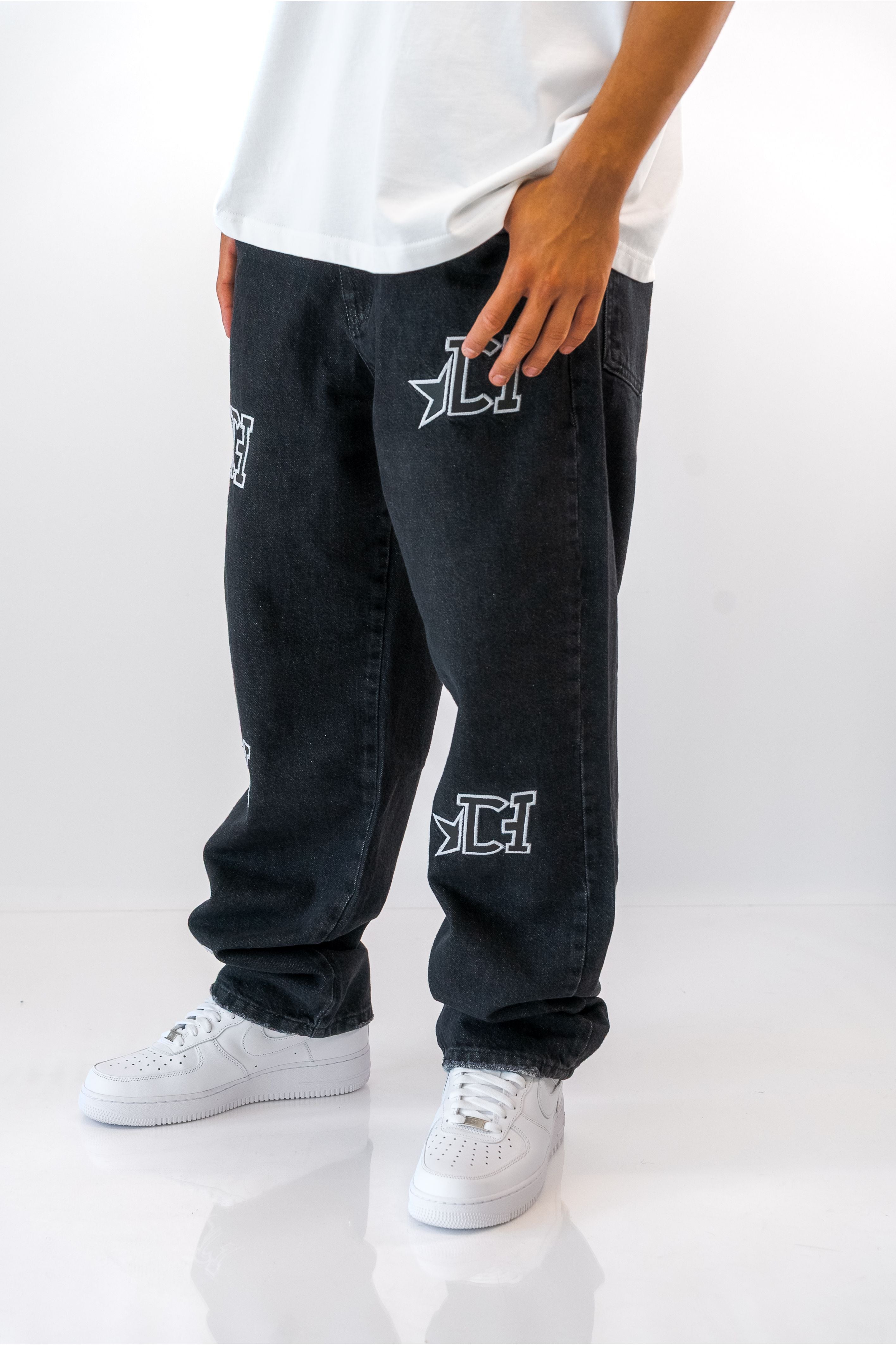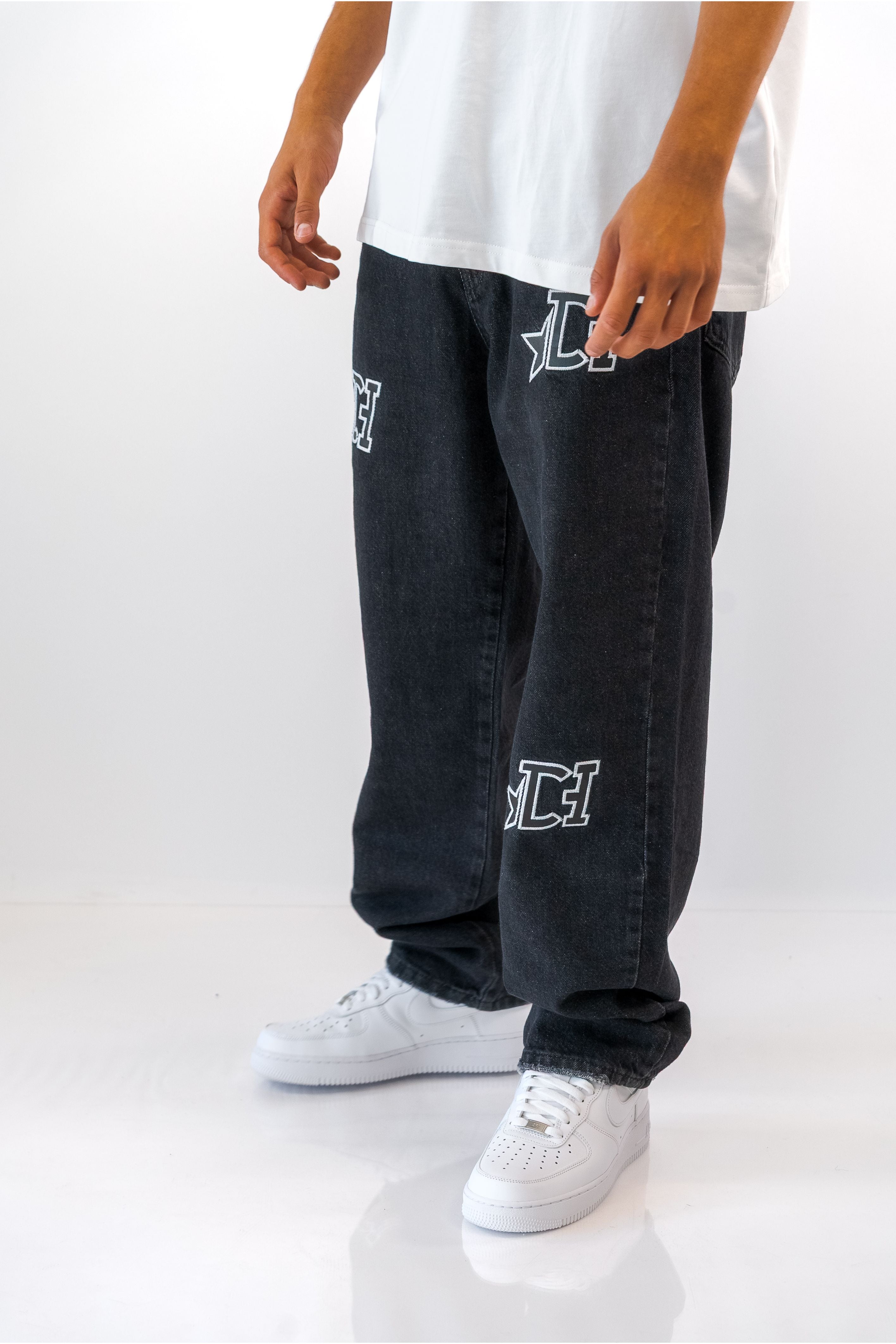 ג'ינס בגזרת Baggy בשילוב פאצ'ים שחור