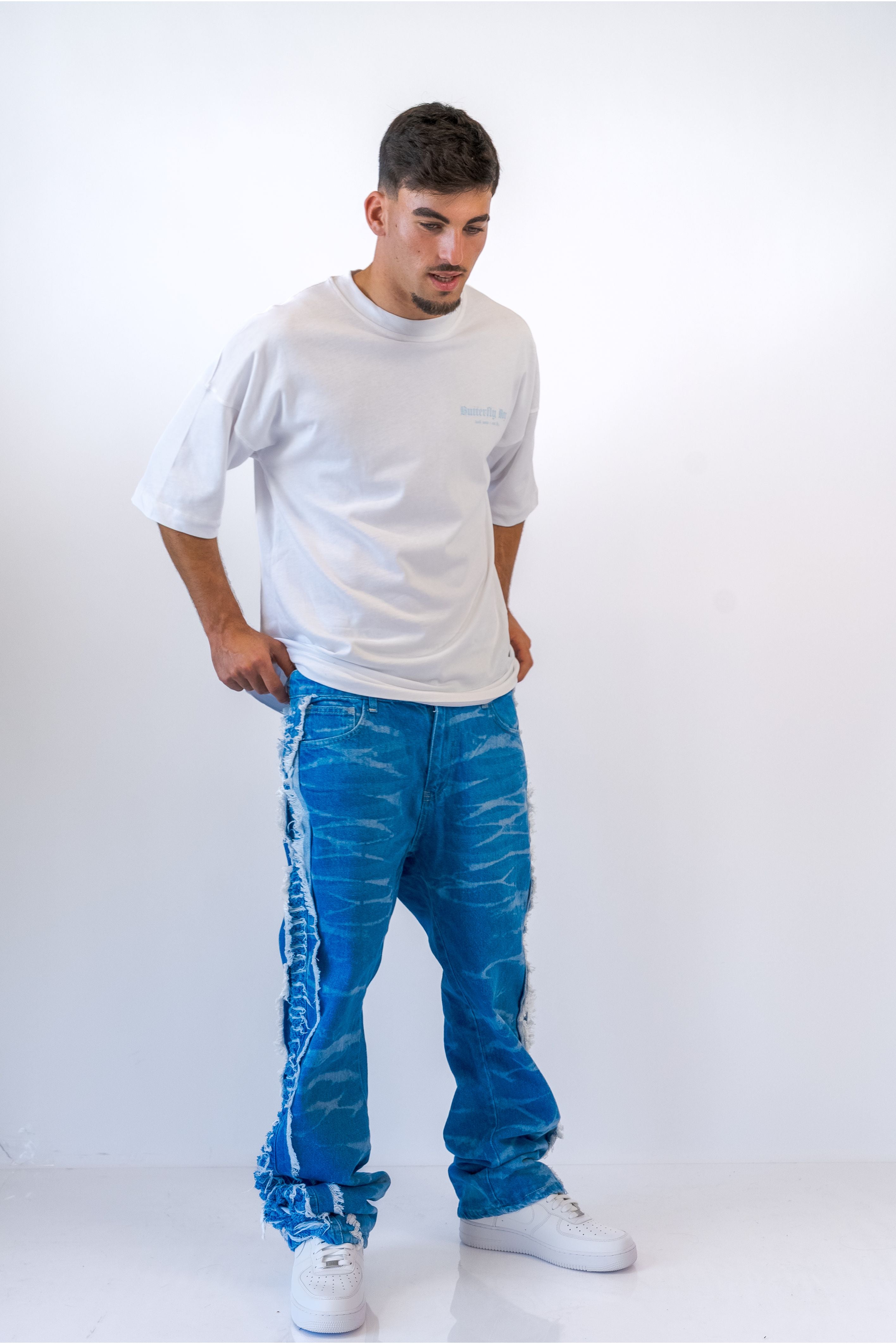 גינס בגזרת Flare בשילוב פרנזים תכלת