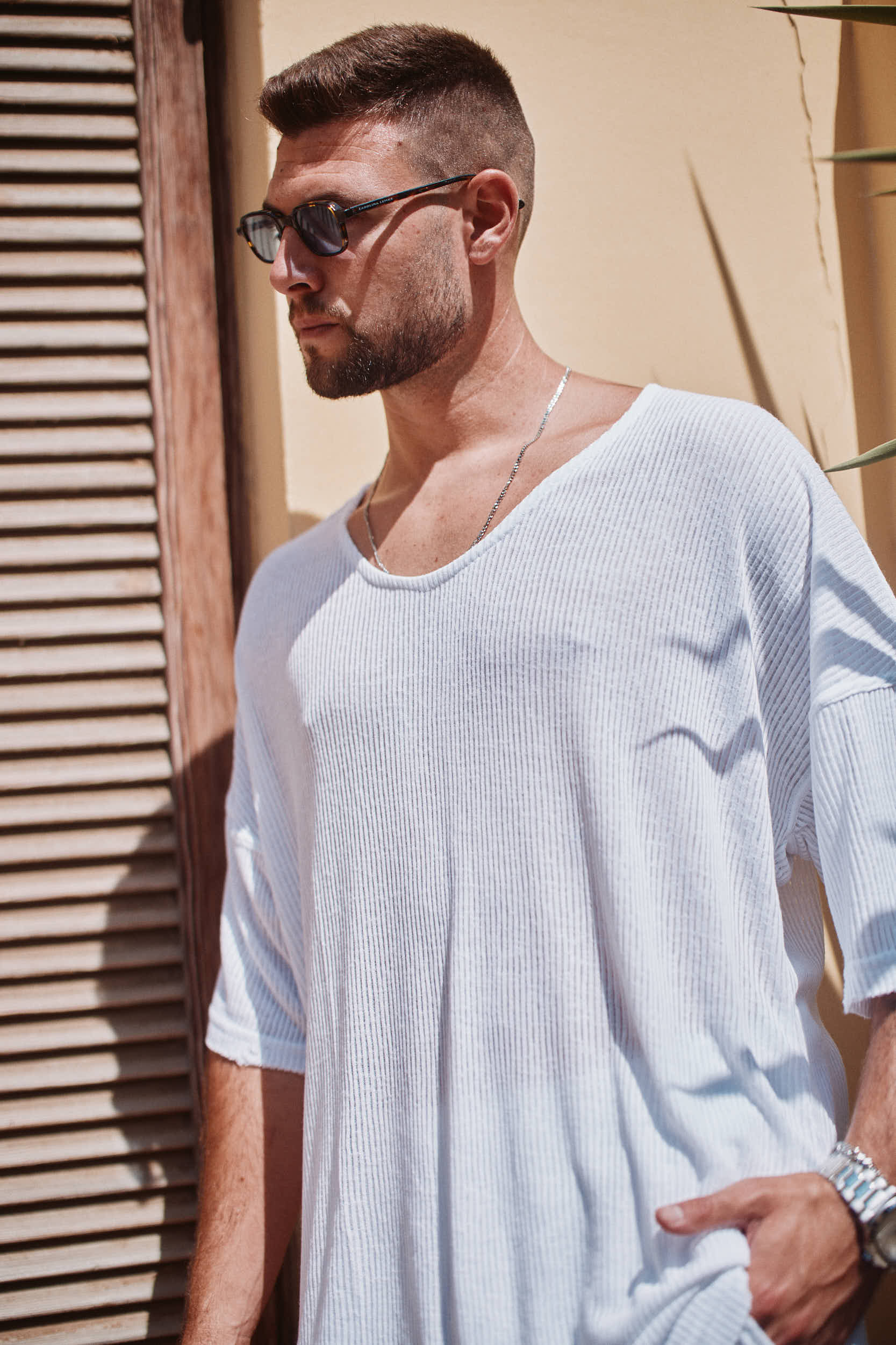 חולצה טי שרט שרוול קצר סאנטוריני אוברסייז - לבן