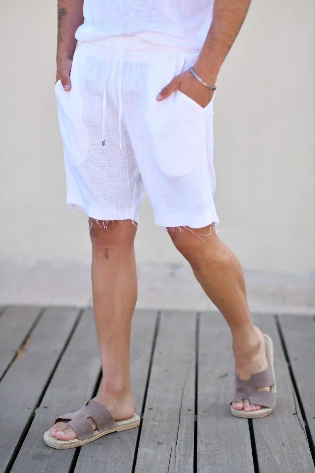 מכנס פשתן קצר לבן