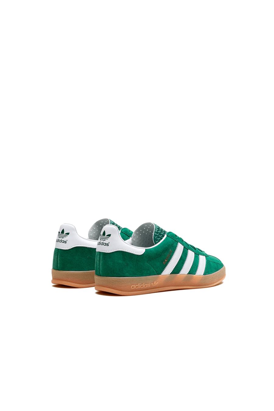 Originally designed as an indoor training shoe, the "Collegiate Green Gum" version of the adidas Gazelle Indoor features a soft suede upper in Collegiate Green. A T-shaped toebox protects the toe area and comes in tonal Collegiate Green. The serrated 3-Stripes logo, heel tab, and collar lining feature Footwear White leather. Branding details include ‘Gazelle’ printed along the 3-Stripes logo in Metallic Gold lettering and a trefoil decorating the heel tab. Something that stands out is the semi-transparent gum rubber outsole. It adds softness to the design and reveals the 3-Stripes logo under the outsole.