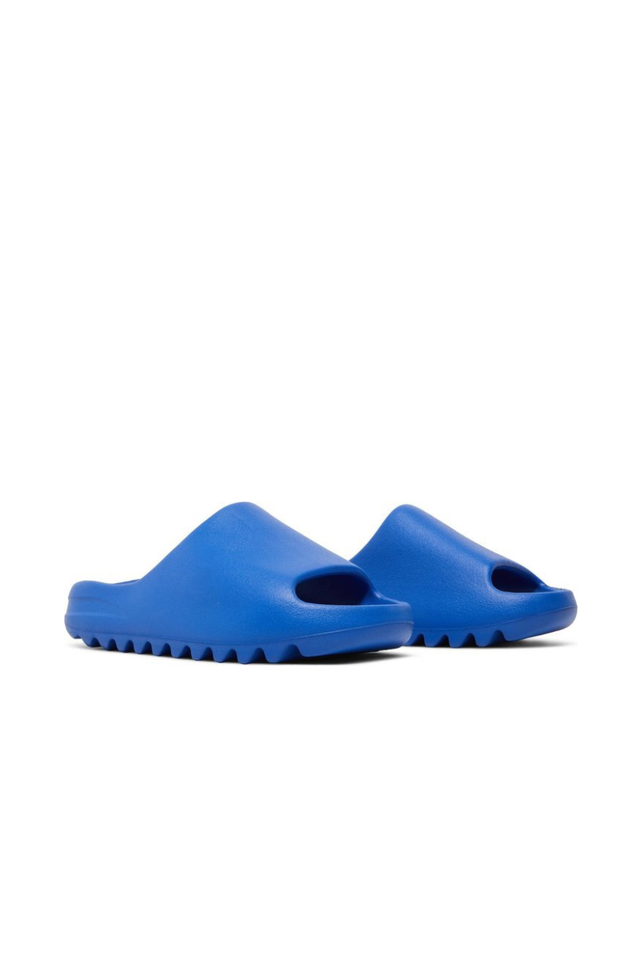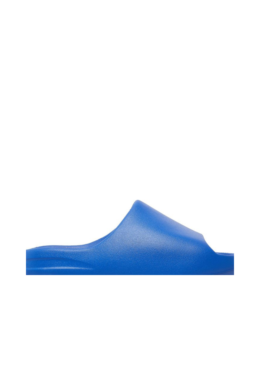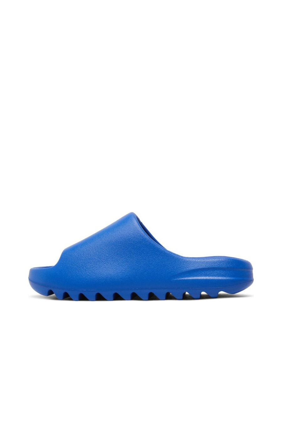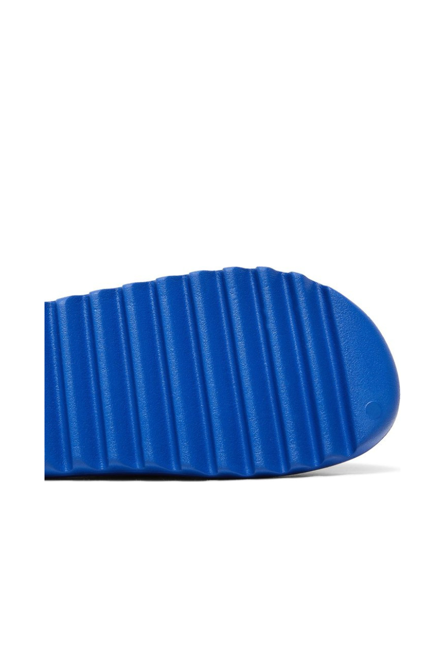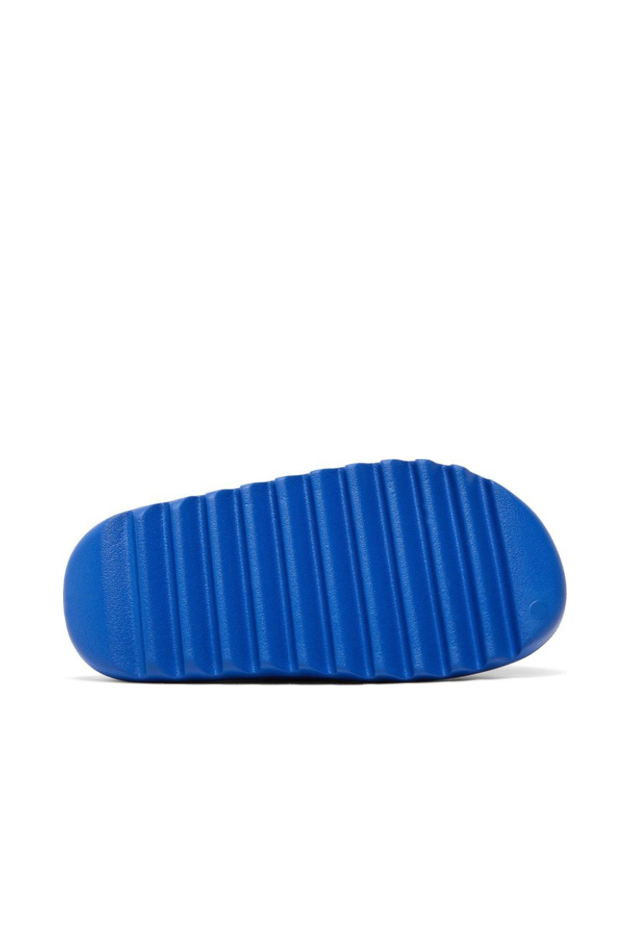 The adidas Yeezy Slide ‘Azure’ showcases a vibrant blue finish on the futuristic comfort sandal, featuring a minimalist one-piece build made with injected EVA foam. Exterior branding is limited to the soft top layer of the footbed, highlighted by a discreet adidas logo debossed at the heel. The slip-on is underpinned by a serrated outsole with strategic ridge placement, offering a combination of impact protection and grip.