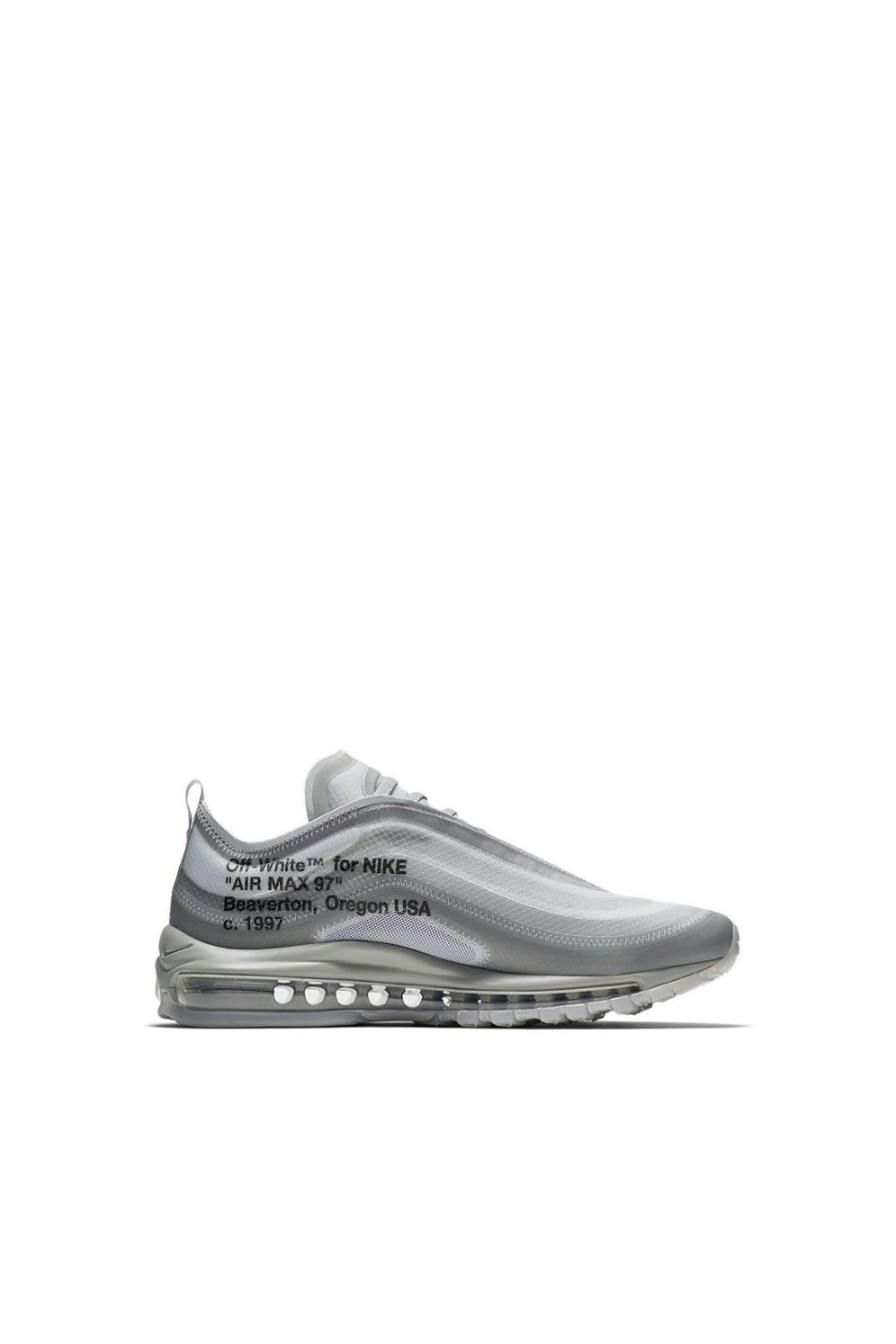 The Off-White x Nike Air Max 97 Grey Menta is a rework of the legendary Air Max 97 style, which was reintroduced last year. The upper is painted in a tonal grey throughout. The side panels feature an eye-catching iridescent Swoosh, while a clean white patch gives the sneaker a nicely contrasting aesthetic. Down below, an Air-infused midsole provides additional comfort and a smoother stride, while "AIR" branding completes the deconstructed look.