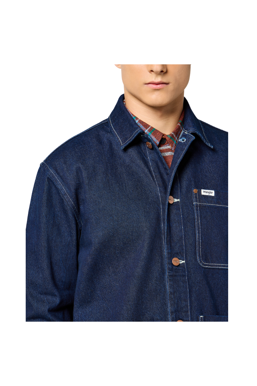 The Wrangler Kobe Chore denim jacket: a must-have for casual, on-trend style, signed by the famous brand Wrangler.