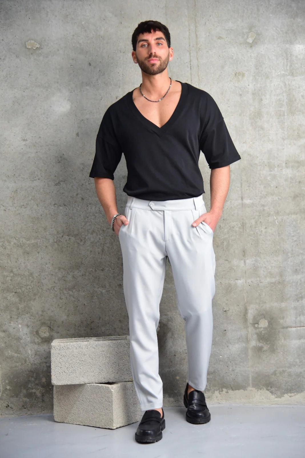 המכנס שילווה אותך מהבוקר לפגישה ועד הערב לאירוע. גזרה מחויטת שמדגישה קווים נקיים ואלגנטיים, בשילוב בד איכותי עם נוחות מקסימלית. מתאים למראה עסקי, אירועי ערב או כל רגע שבו אתה רוצה להיראות מדויק ומושקע.