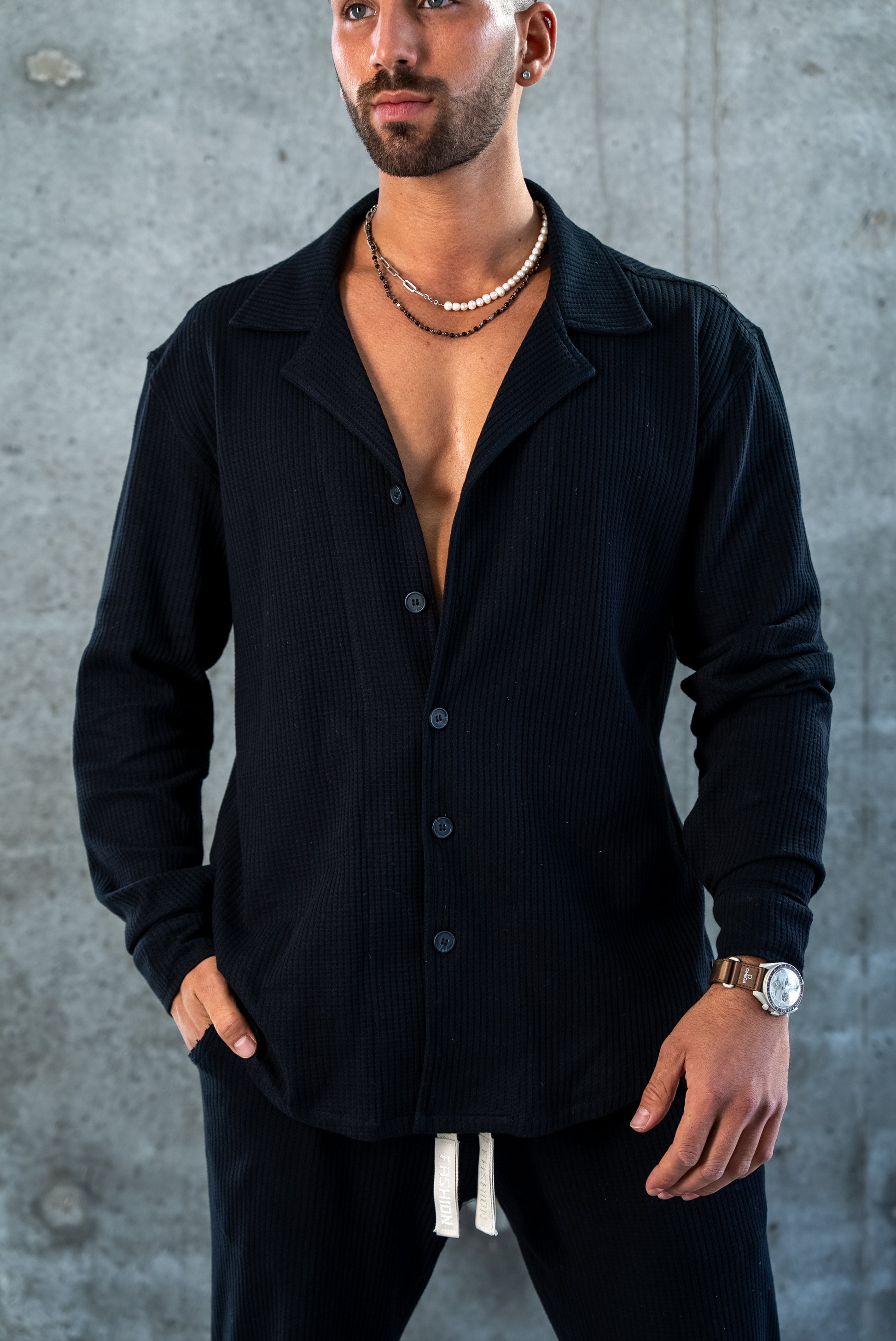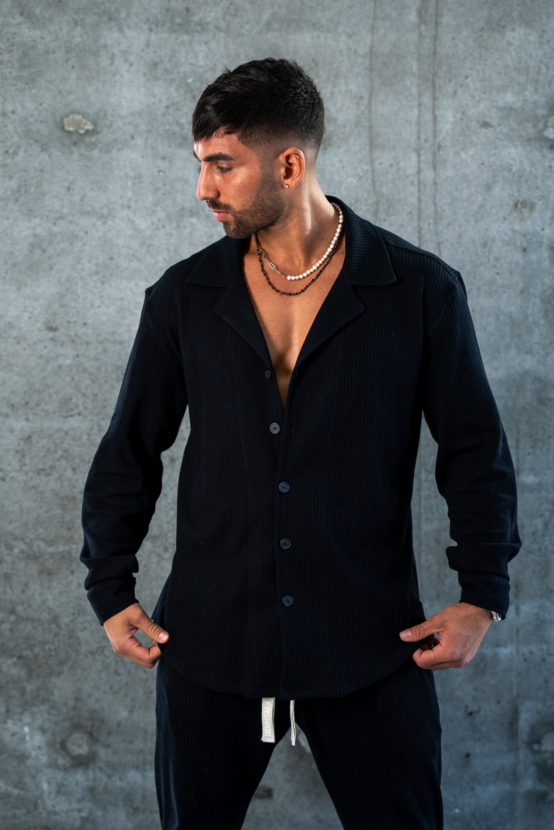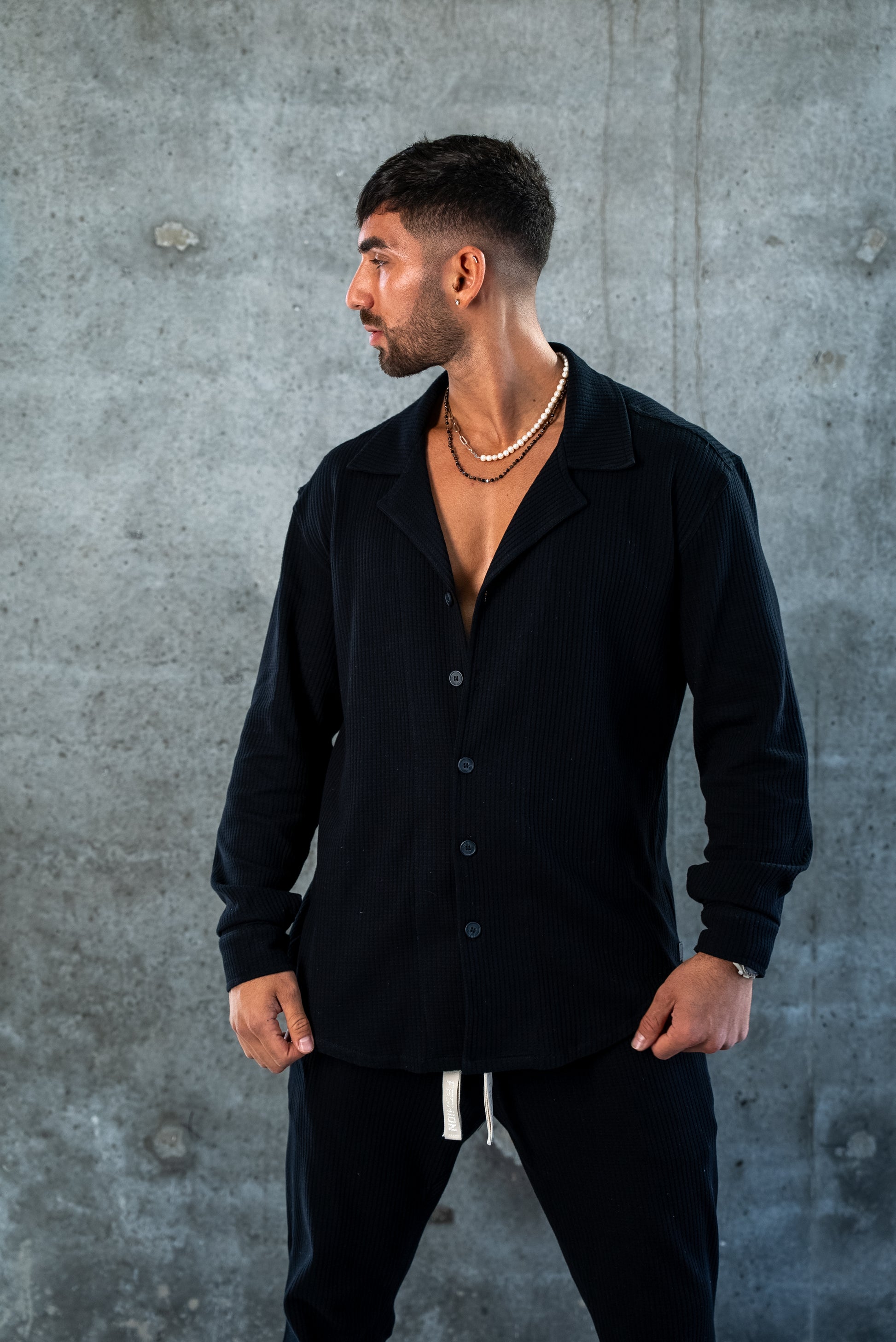 ELEGANT SHIRT WAFFLE - BLACK