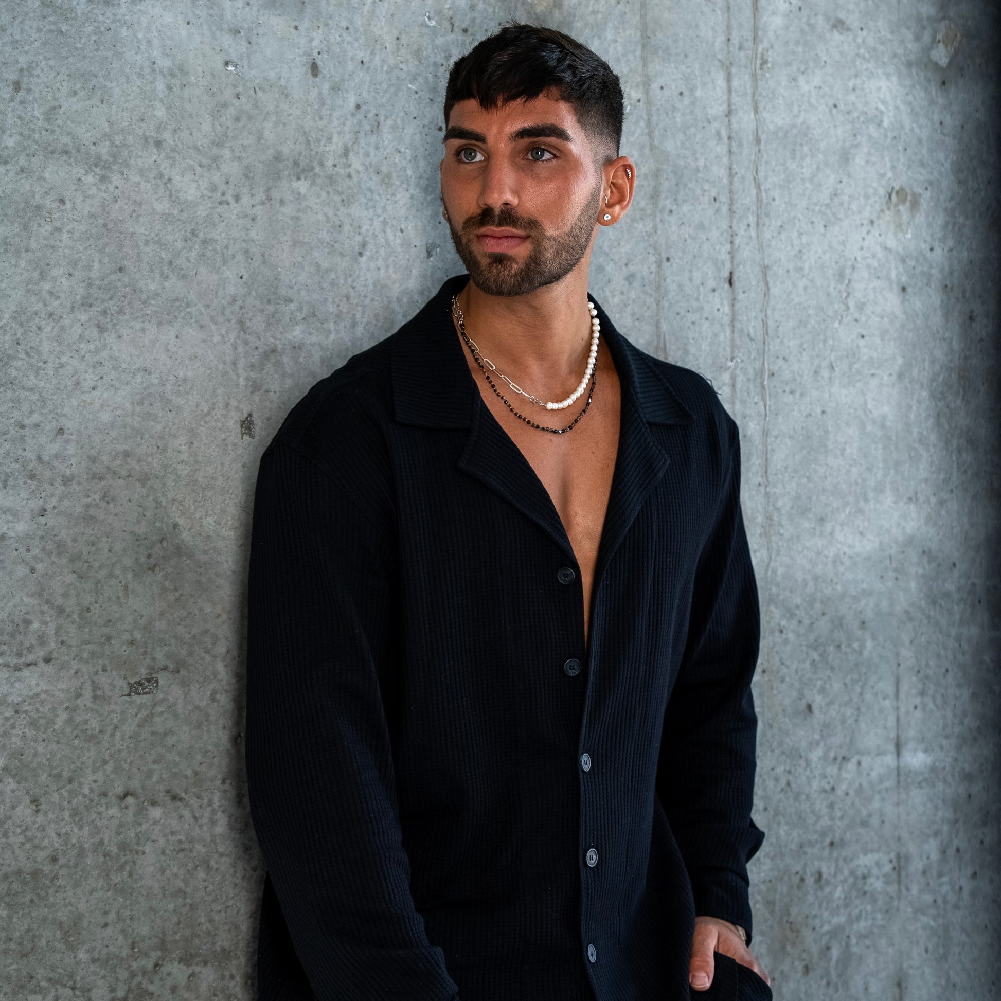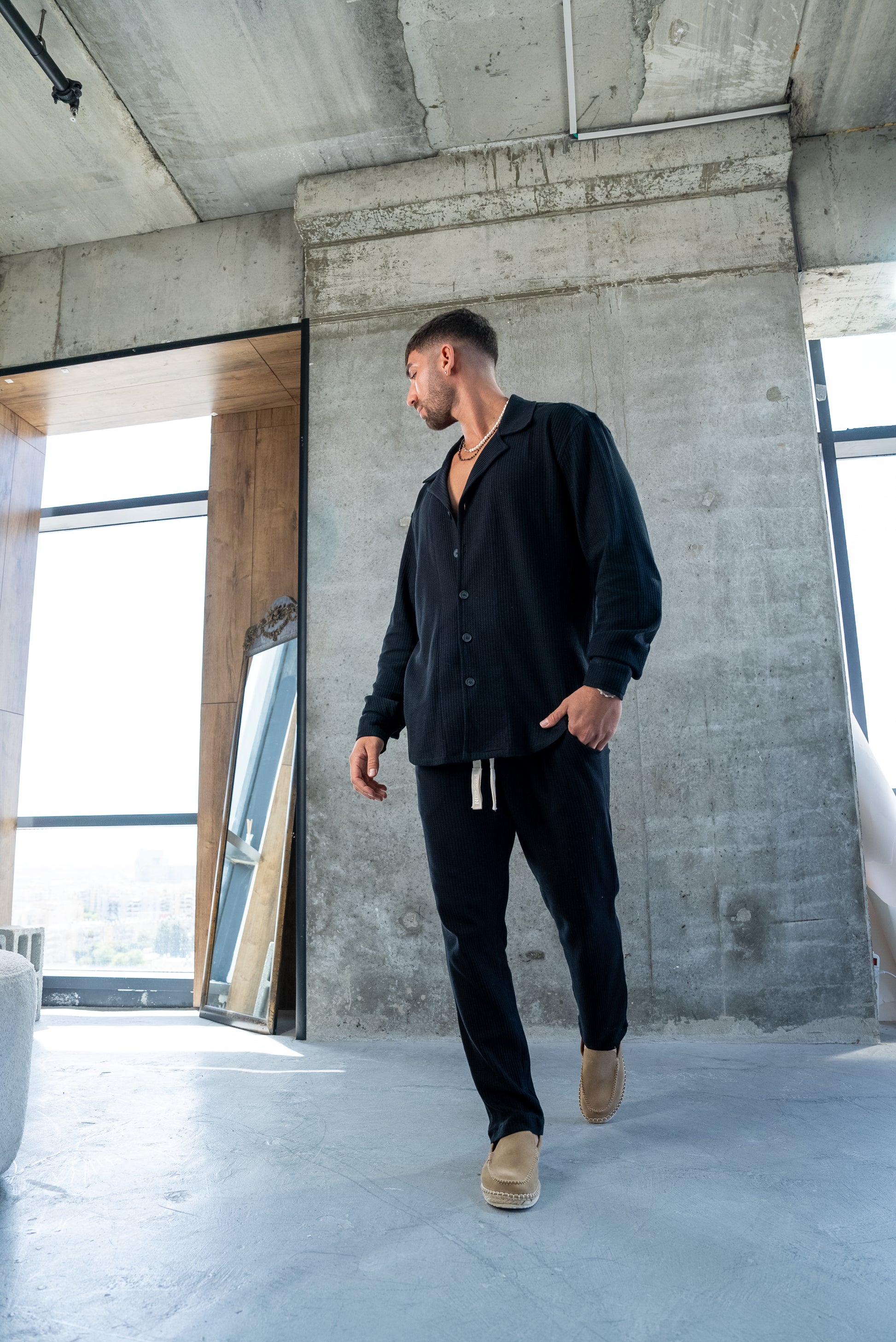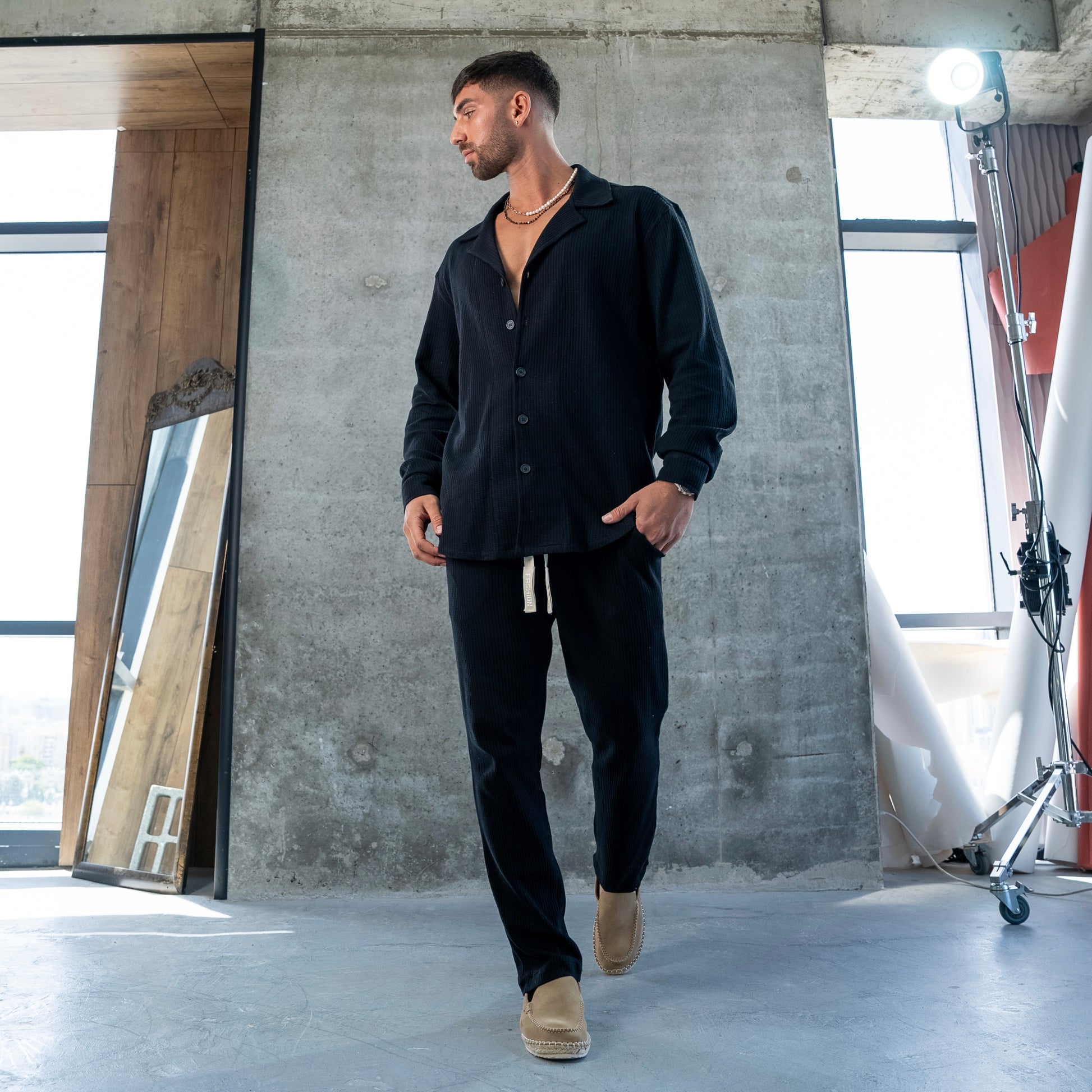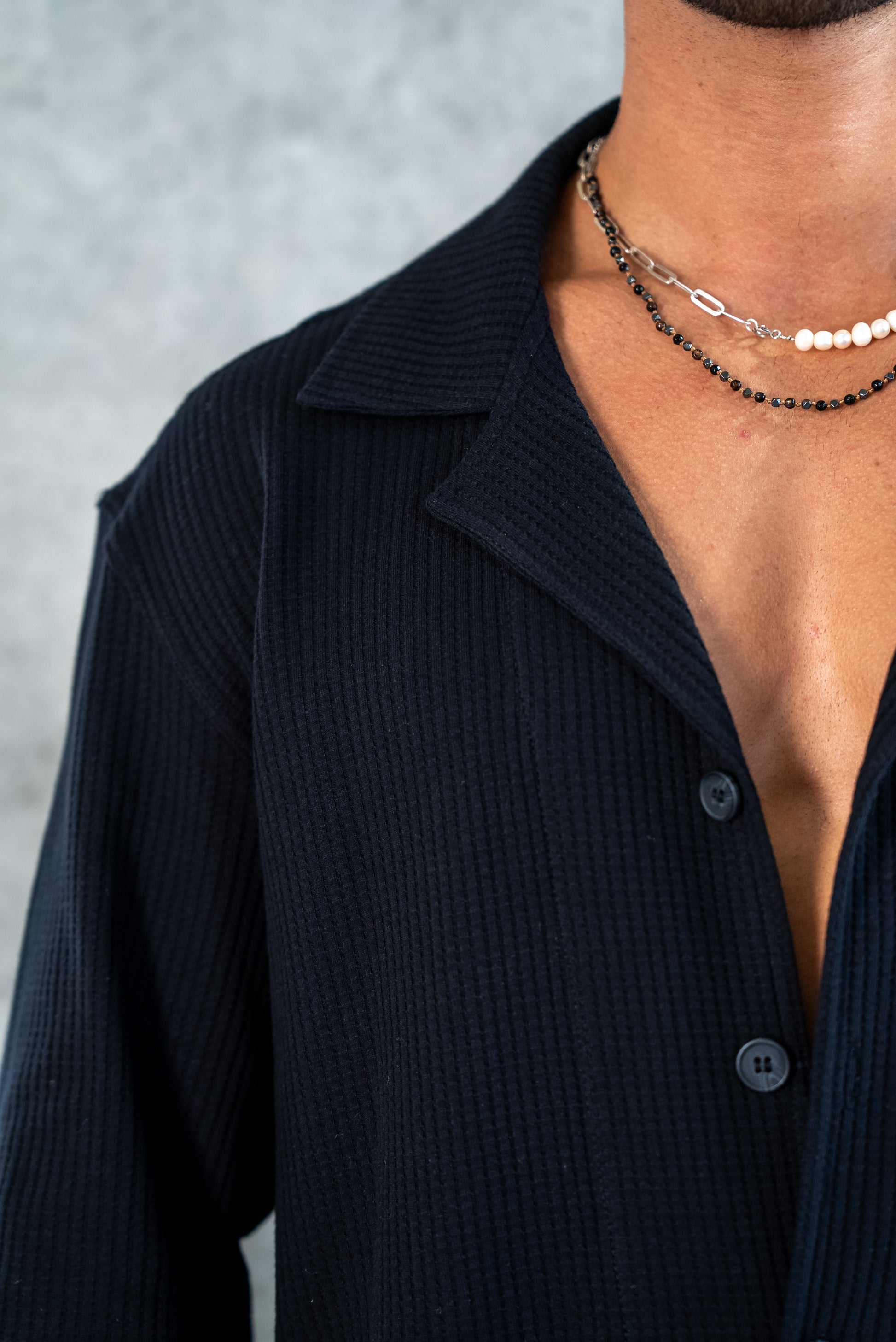 ELEGANT SHIRT WAFFLE - BLACK
