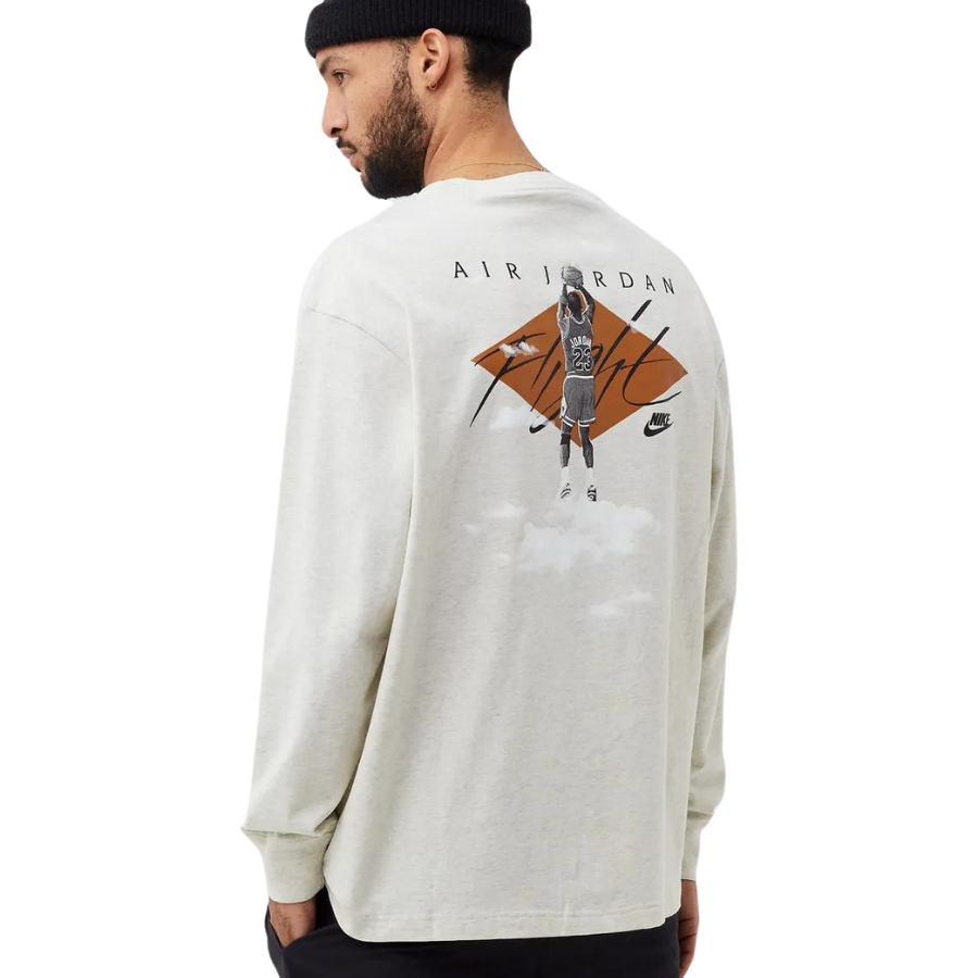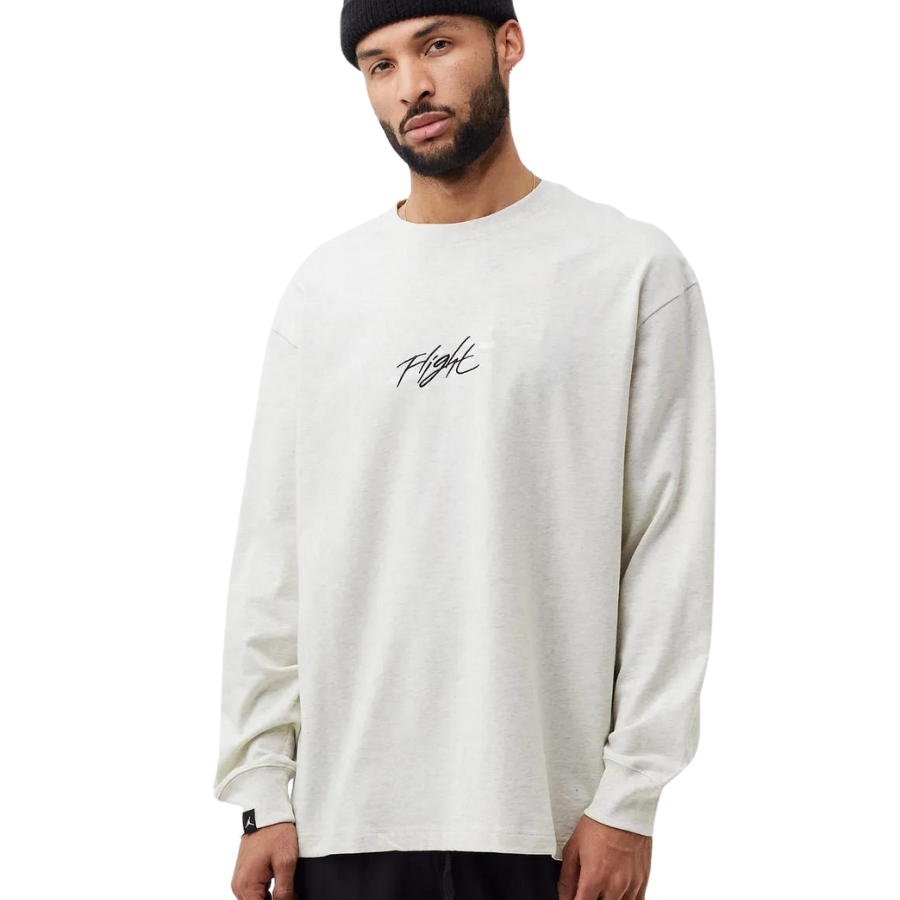 The product Jordan - Jordan Flight Essentials Longsleeve in the color OATMEAL HEATHER/WHITE is available at BSTN.